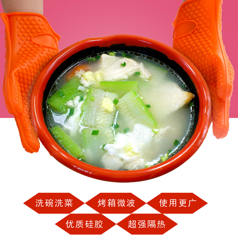 厨房烘培加厚手套食品级硅胶微波炉隔热防烫手套家用耐高温烤箱手套